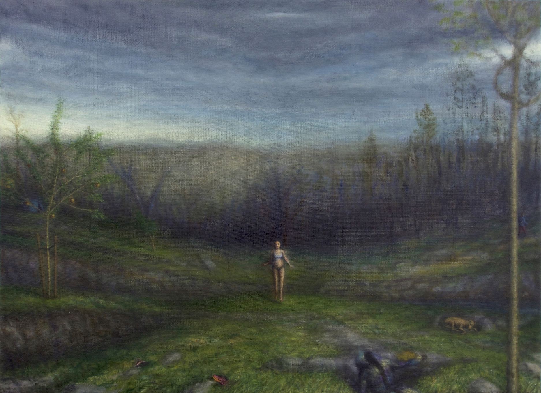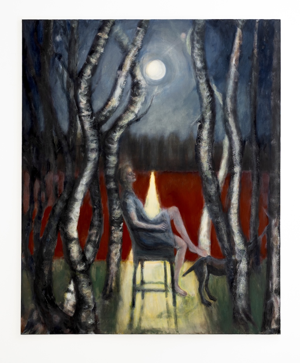 Darklights and Promises (Woman in Forest with Moon), 2020, oil, resin and beeswax on canvas, 170 x 140 cm