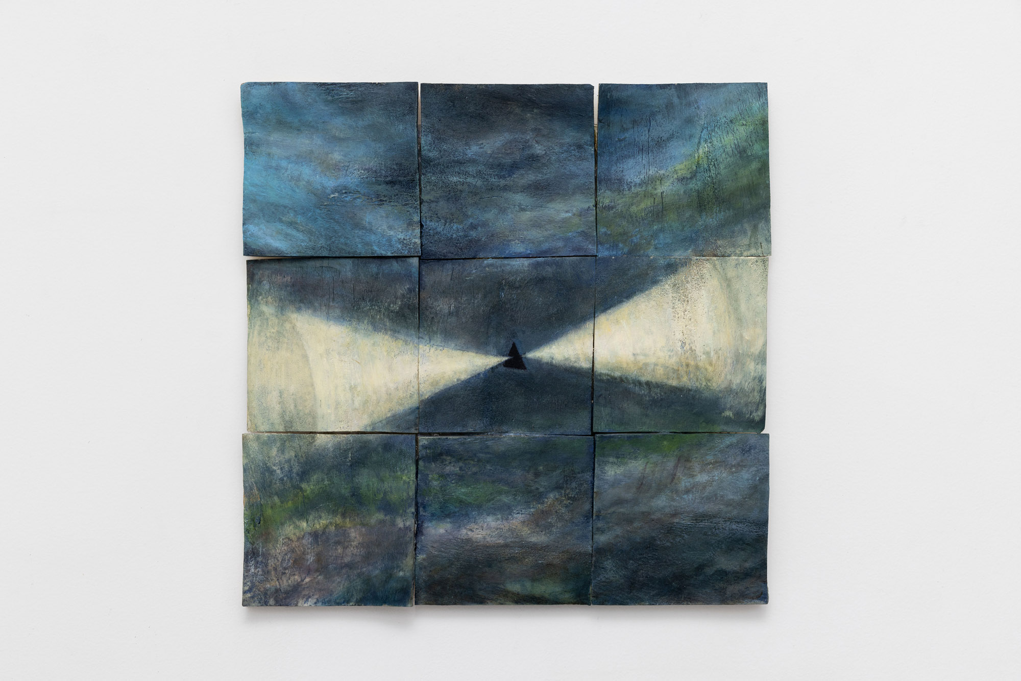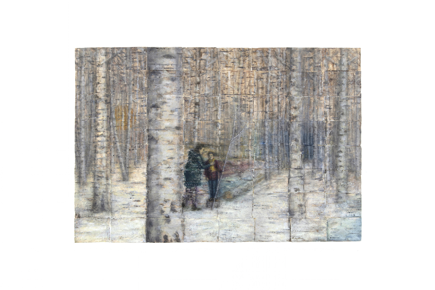 Out of body, 2024, oil, beeswax on birch bark, 37.5 x 56 cm, unique